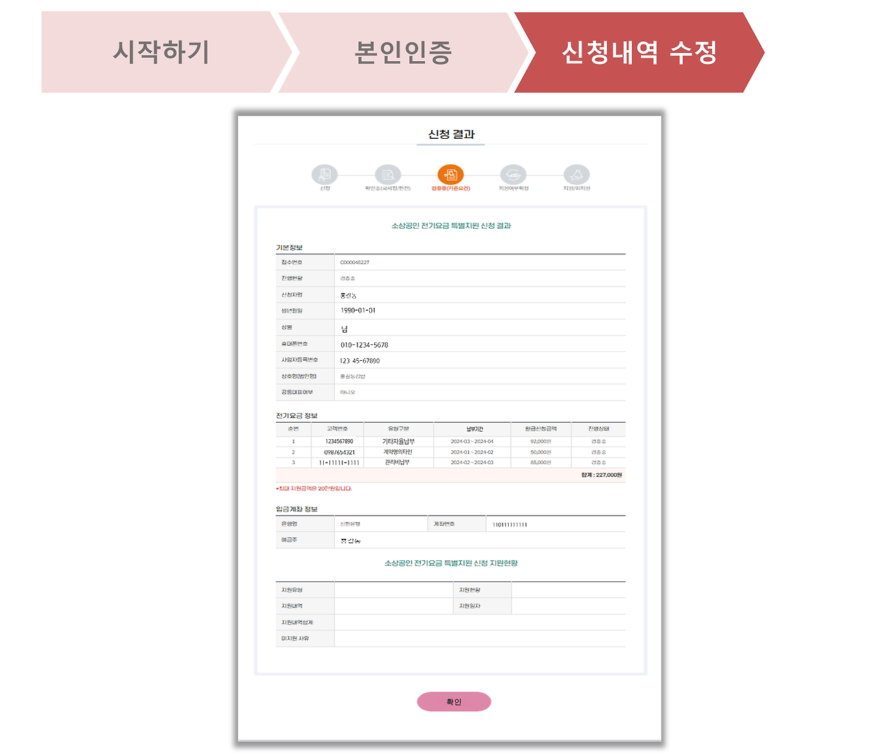 그러면 최종적으로 소상공인 전기요금 특별지원 신청 결과를 확인하실 수 있다.수정 및 삭제